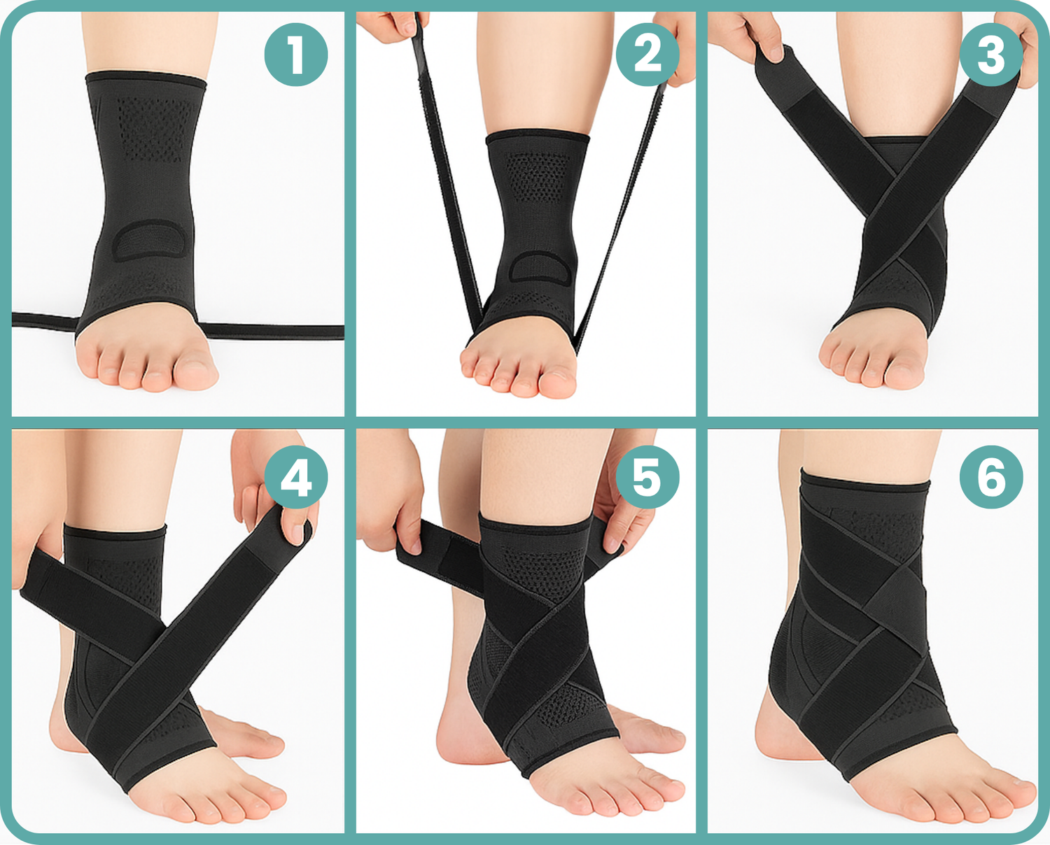 Portez la chevillère directement contre la peau, idéalement sur un pied propre et sec. Ajustez la sangle pour un maintien confortable mais pas trop serré.